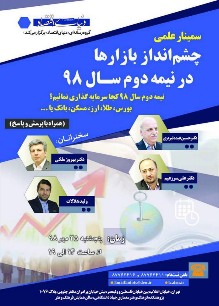 در روز پنجشنبه ۱۳۹۸/۰۷/۲۵، حسین عبده تبریزی در سمینار علمی روزنامه دنیای اقتصاد تحت عنوان “چشمانداز بازارها در در نیمهی دوم سال ۹۸” شرکت کرد. در این نشست دکتر علی سرزعیم در مورد موقعیت عمومی اقتصاد ایران، دکتر بهروز ملکی در مورد بخش مسکن و آقای ولید هلالات در مورد موقعیت بازار سرمایه و بازار […]