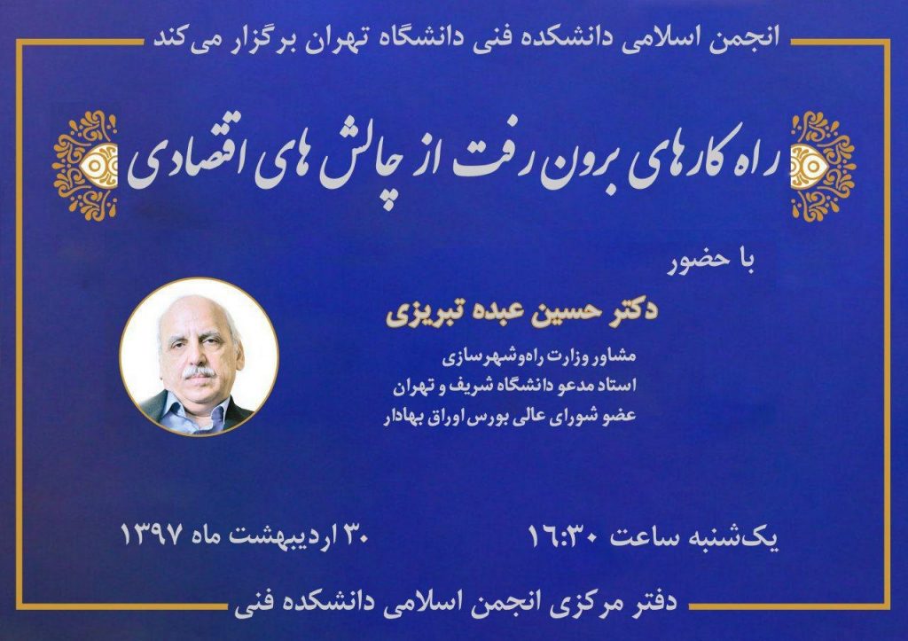روز یکشنبه ۲۳ اردیبهشتماه ۱۳۹۷، حسین عبده تبریزی به دعوت انجمن اسلامی دانشکدهی اقتصاد دانشگاه تهران در سالن همایشهای آن دانشکده حضور یافت و سخنرانیای با عنوان ʺبرنامهی حلوفصل بحران بانکی در ایرانʺ ارائه نمود. روزنامهی دنیای اقتصاد در شمارهی ۷ خردادماه خود گزارش نسبتاً مفصلی از این جلسه به چاپ رسانده که آن را […]