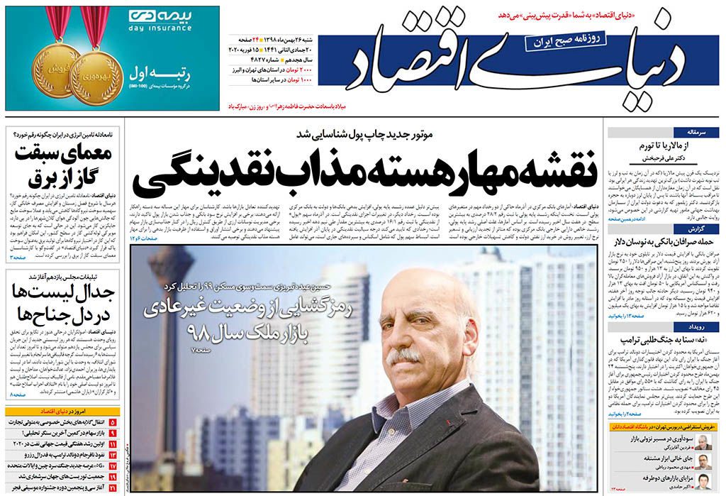 نشریه دنیای اقتصاد در شماره ۲۶ بهمنماه خود مقاله از دکتر حسین عبده تبریزی با عنوان «رمزگشایی از وضعیت غیرعادی بازار ملک سال ۹۸» به چاپ رسانده است. حسینعبدهتبریزی، اقتصاددان و صاحبنظر برجسته بخش مسکن با حضور در رسانه تصویری اینترنتی اکوایران-برنامه متراژ-(اینجا) در تشریح وضعیت پیشروی بازار مسکن در سال ۹۹ اعلام کرد: به […]